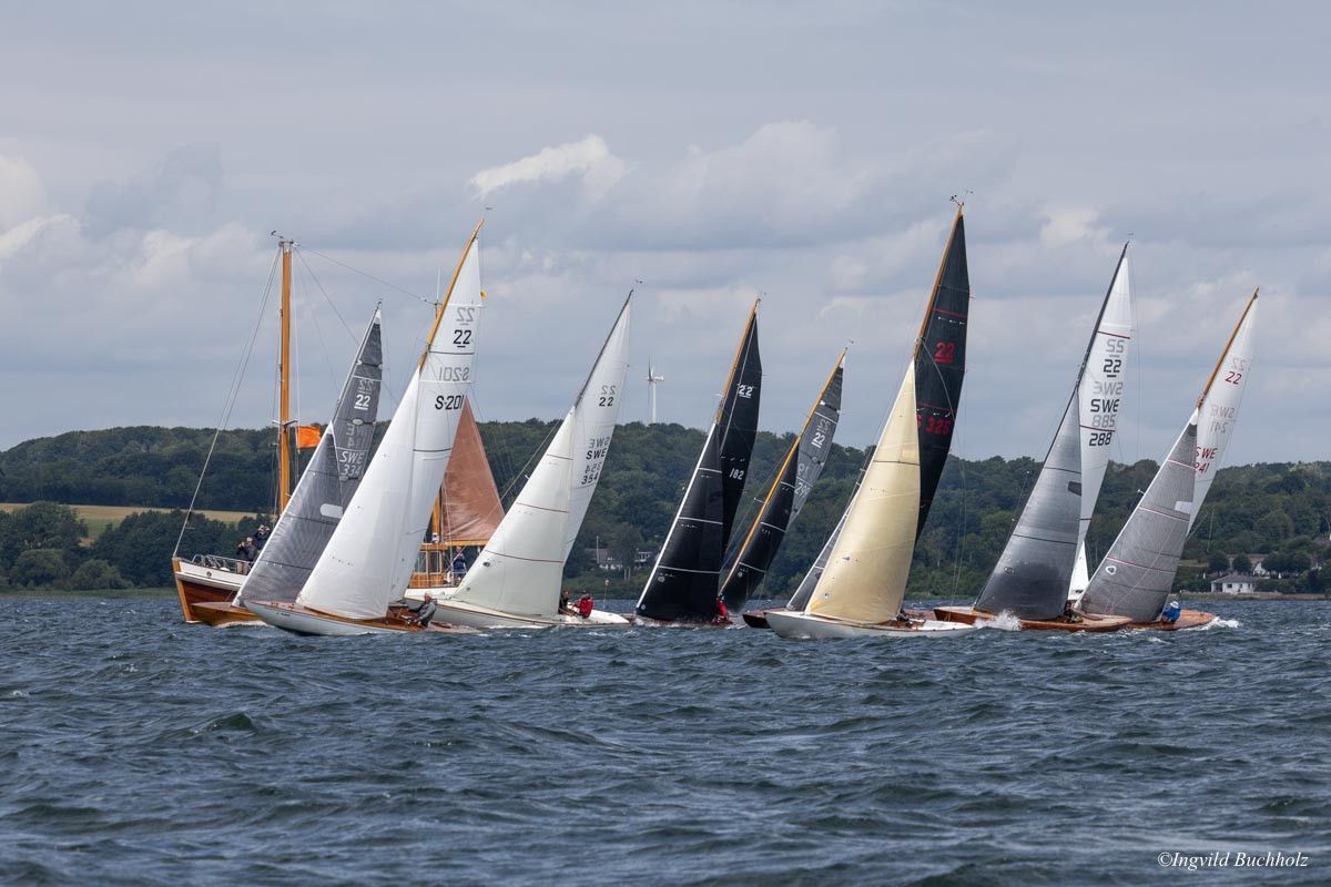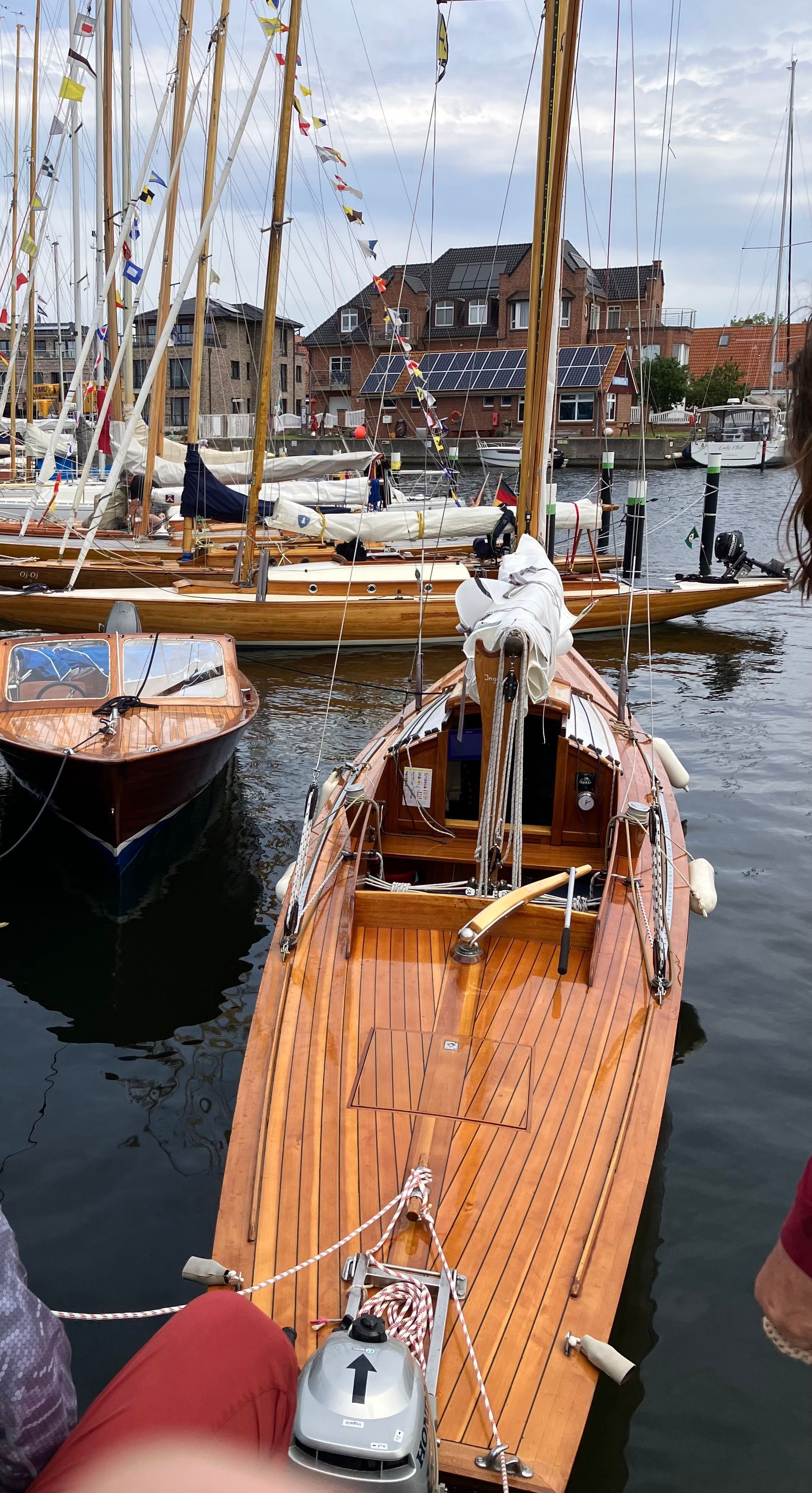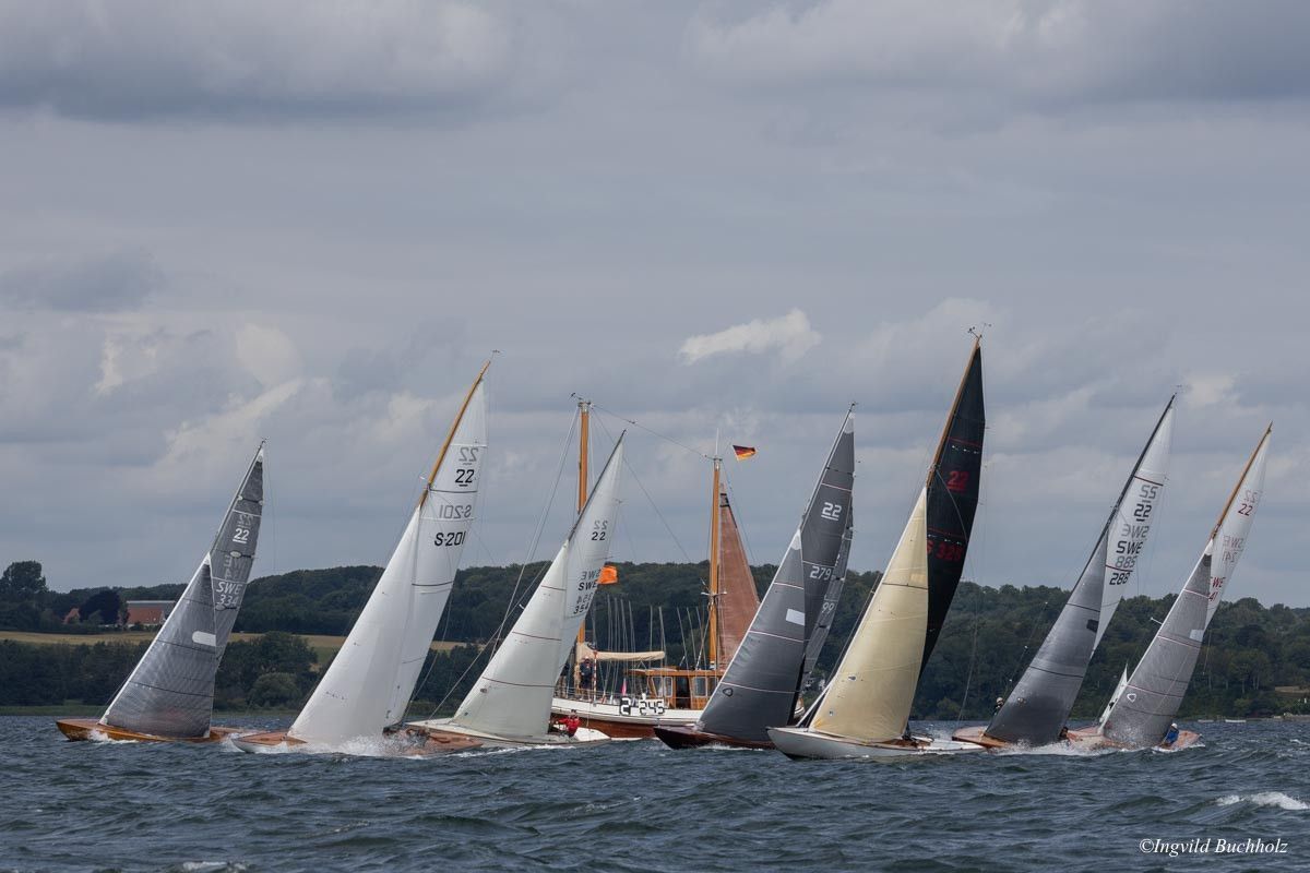 Auch hier fuhren uns die vorderen Schiffe mit ihren Riesen-Spi 's mit den Riesenohren davon. Auch die neueren SK's , Holz wie GFK , mit einem höheren Plankengang kamen besser zurecht.