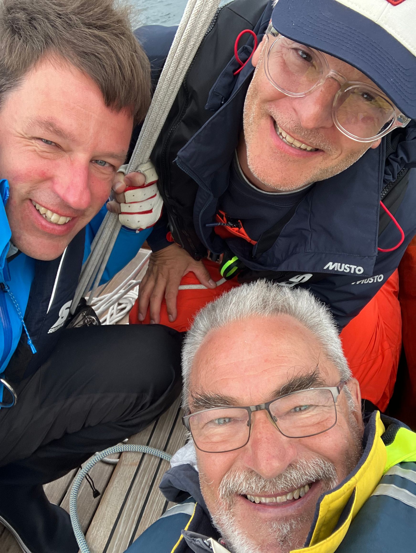 Die Regattaleitung mit Dr. Martin ,sowie Joachim und Martin , dessen Boot Martin als Start- Zielschiff er zur Verfügung stellte , war wie immer souverän.