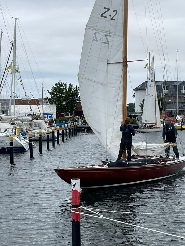 Wir auf SK22 S 201 Finiekette hatten mit der 9o Jahre alten Bakstagsspannvorrichtung technische Probleme und hatten leider nur die erste Wettfahrt.